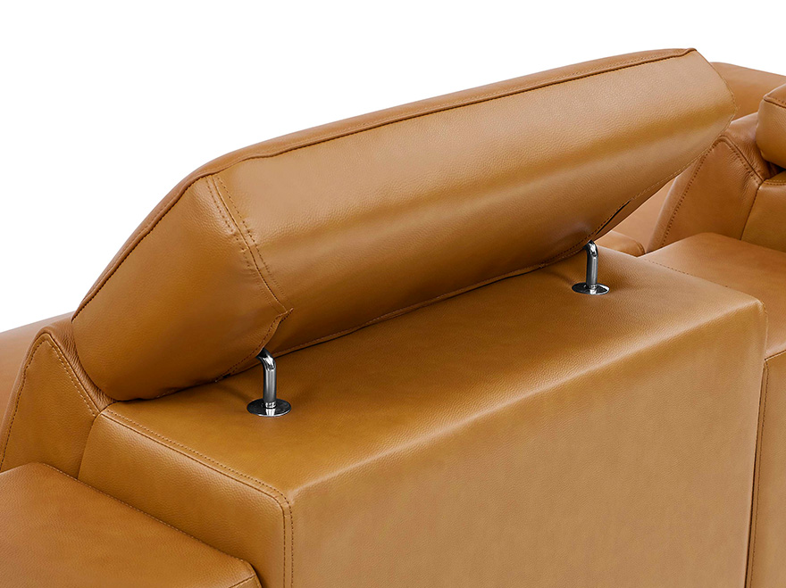 This 5-seater Leather L-Shape Sectional is perfect for spacious living rooms, offering vintage charm. The top-grain leather match upholstery gives it a luxurious, textured look, while the power recline feature and adjustable headrests ensure ultimate relaxation. With a built-in storage console for your essentials and cup holders for convenience, it's designed for modern living.